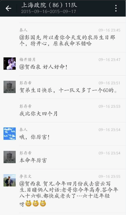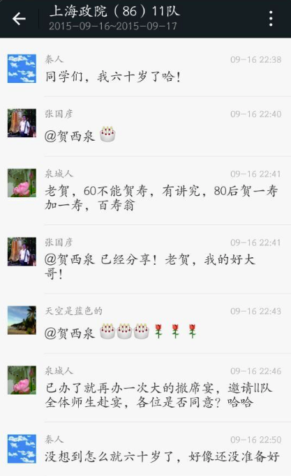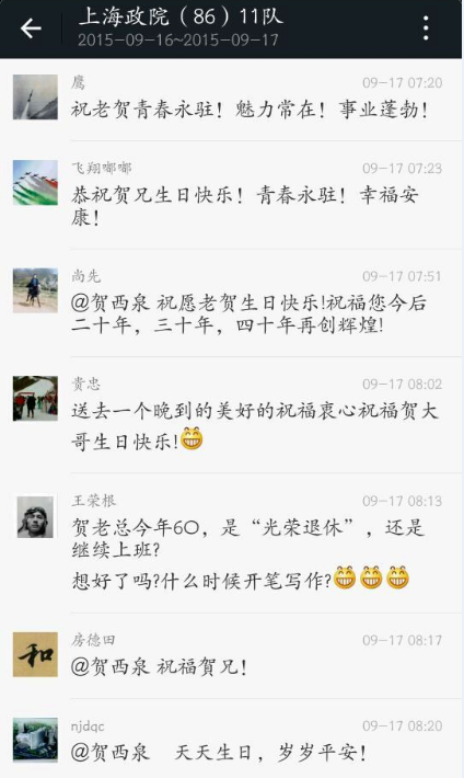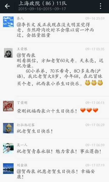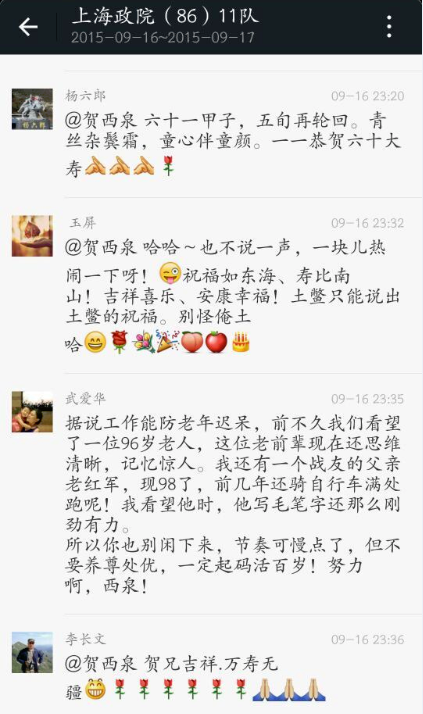 第九篇(浓浓军校情-原空军政治学院11队同学微信庆贺贺总生日)