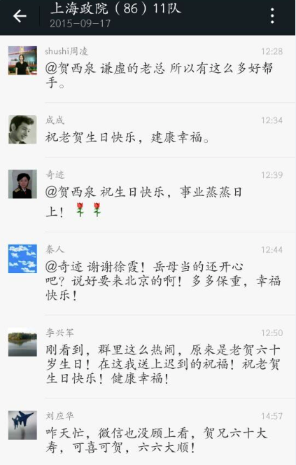 浓浓军校情-原空军政治学院11队同学微信庆贺贺总生日
